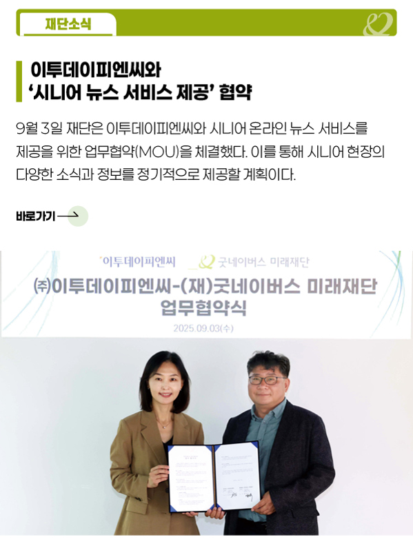 시니어를 위한 다양한 정보를 뉴스레터 ‘좋은이웃&라이프’ 에 담아 매월 보내드립니다